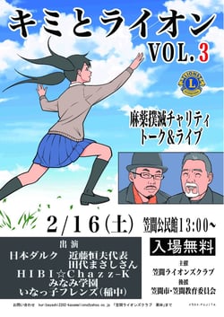 ●2/16(土)「キミとライオン VOL.3 〜麻薬撲滅チャリティトーク&ライブ(茨城県 笠間市) 」